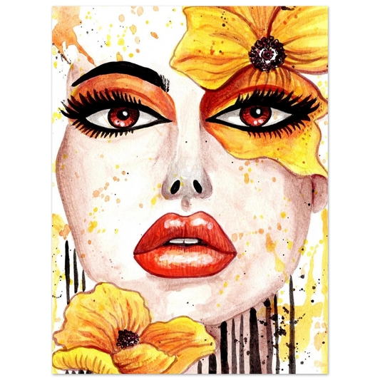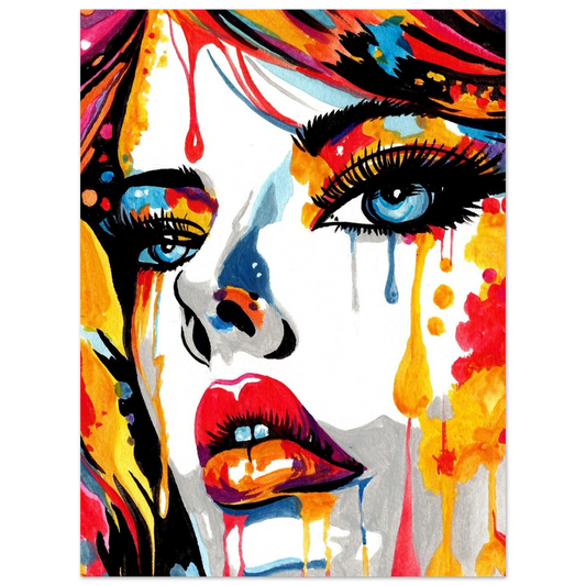 Vibrant Art Poster – Woman's Face with Blue Tears & Multicolors