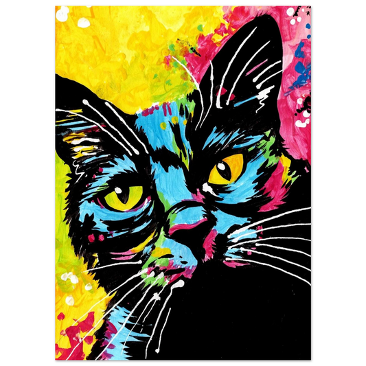Colorful Cat Art Print – Black and Primary Color Design