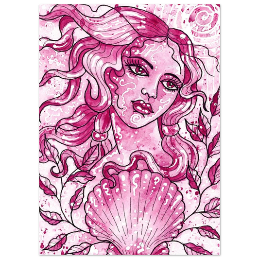 Elegant Pink Lady with Pearl Shell Poster – Premium Matte Art Print