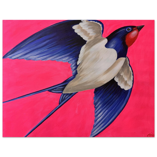 Fine Art Poster: Classic Swallow in Flight with Flouro Pink Background | Vivid Giclée Print