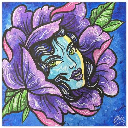 Big Eyed Girl Artwork Print – Purple Watercolor Design Print